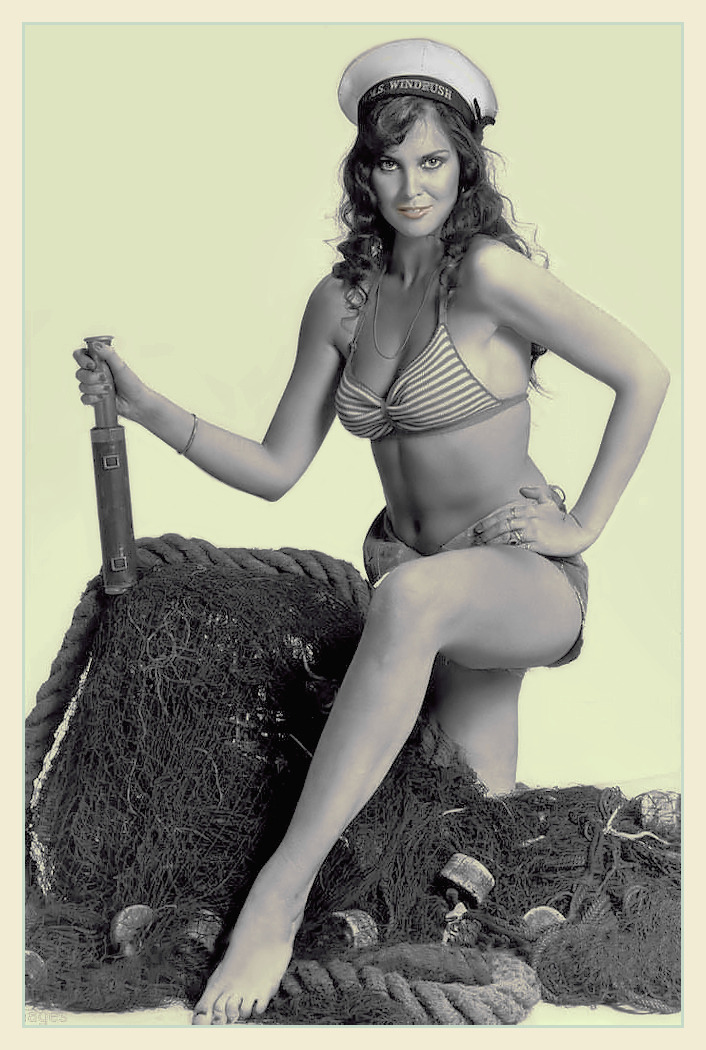 newly developed liquor, Lamb’s Navy Rum, sexy Caroline Munro was chosen to be